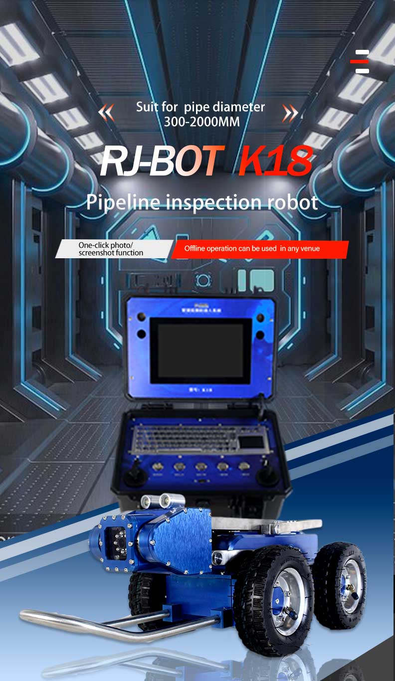The K18 is an intelligent robot designed for industrial and municipal pipeline inspection, specializing in visual data collection of internal pipeline conditions. It supports DN300 to DN2000 pipelines, including municipal water supply/drainage networks, industrial process corridors, and gas/heat transmission pipelines—commonly buried underground and reliant on manual inspections for extended periods.