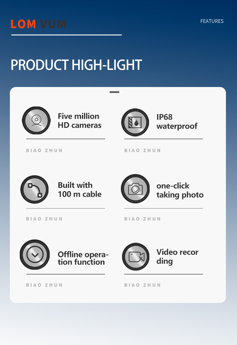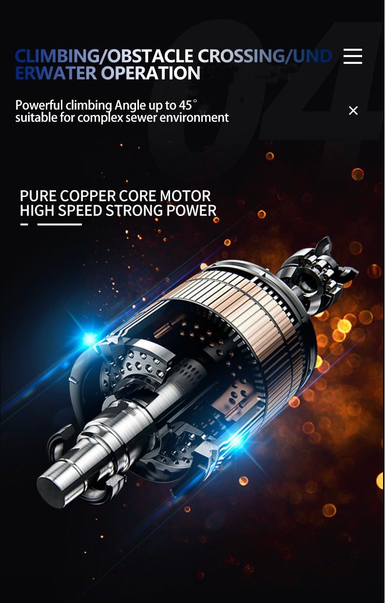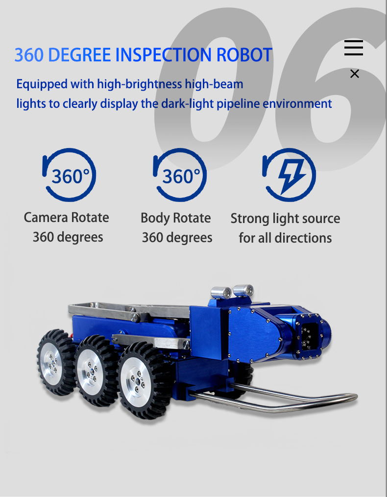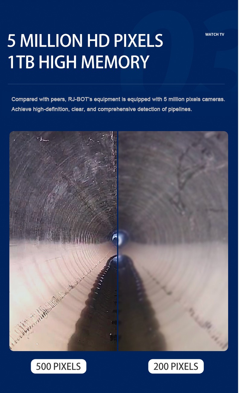 360° Rotatable Camera: Navigates bends, diameter transitions, and complex pipe geometries, eliminating blind spots through adaptive angle adjustments.
