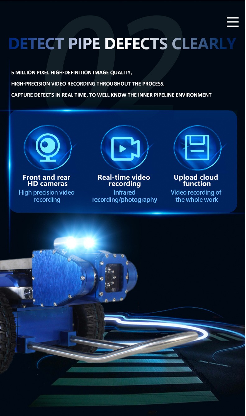100-Meter Wireless Transmission: Operates wirelessly inside pipelines, enabling real-time remote monitoring and eliminating cable retrieval delays, improving long-distance inspection efficiency by over 3 times.