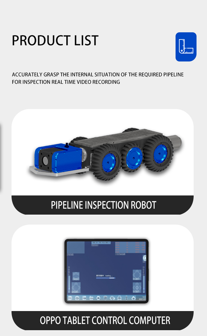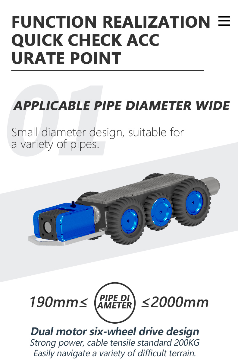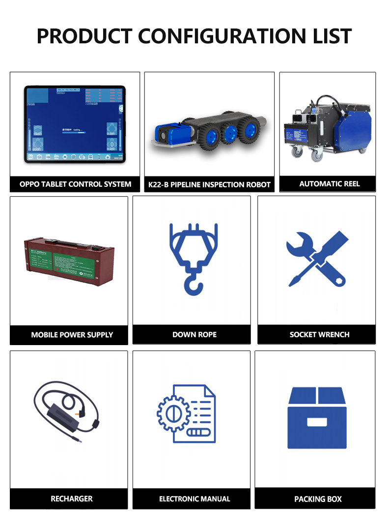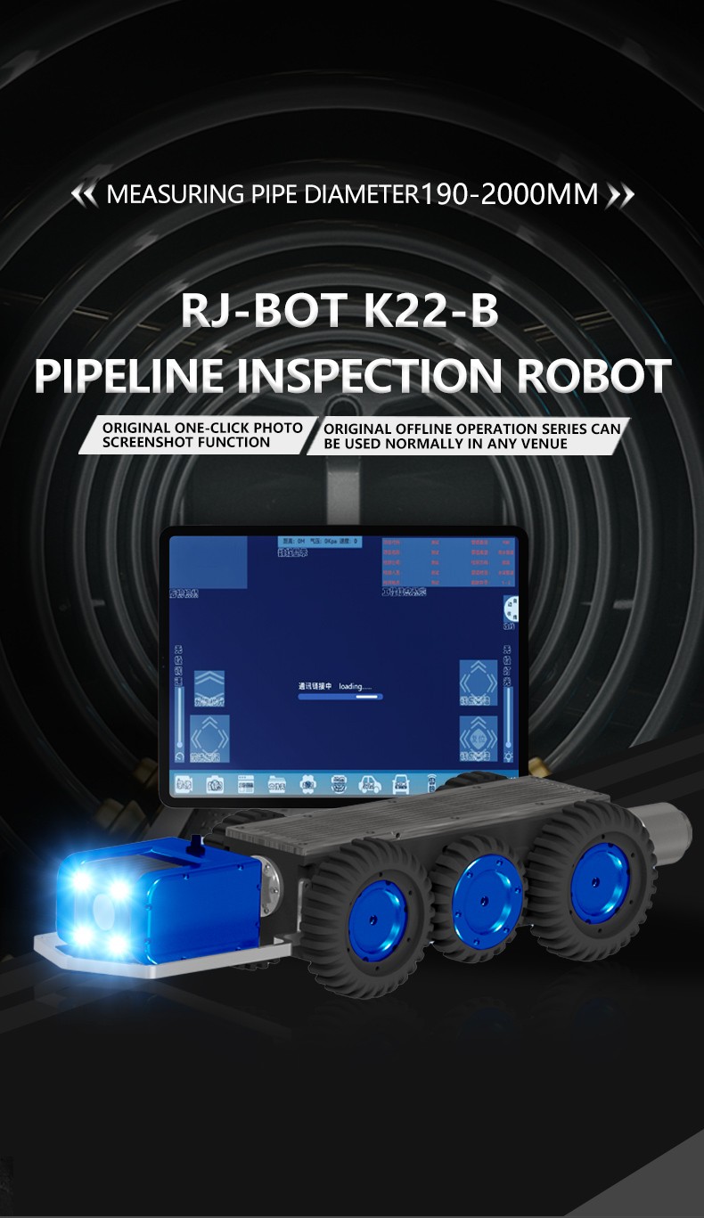 The K22B is an intelligent pipeline inspection robot designed to meet CCTV pipeline inspection standards, engineered for DN190 to DN2000 pipelines. Equipped with high-definition imaging systems, multi-dimensional sensors, and wireless transmission modules, it delivers precise detection and data-driven assessments of internal pipeline structures, corrosion, blockages, and other defects. It is tailored for municipal drainage networks, industrial process pipelines, and gas/heat distribution branches—particularly addressing detection blind spots in small-diameter pipelines.