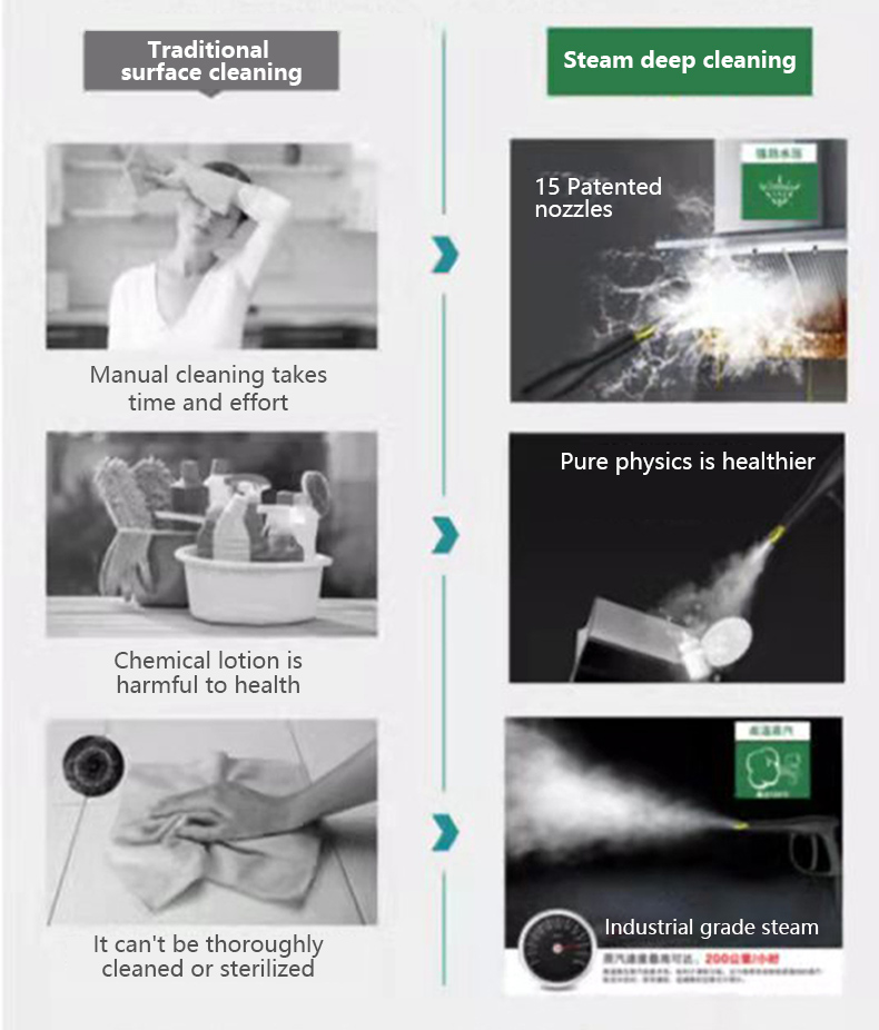 Comparison Dimension | Traditional Cleaning (Rags/Mops/Dry Sweeping) | Chemical Spray Machine (High-Temp, High-Pressure Chemical Spraying) |