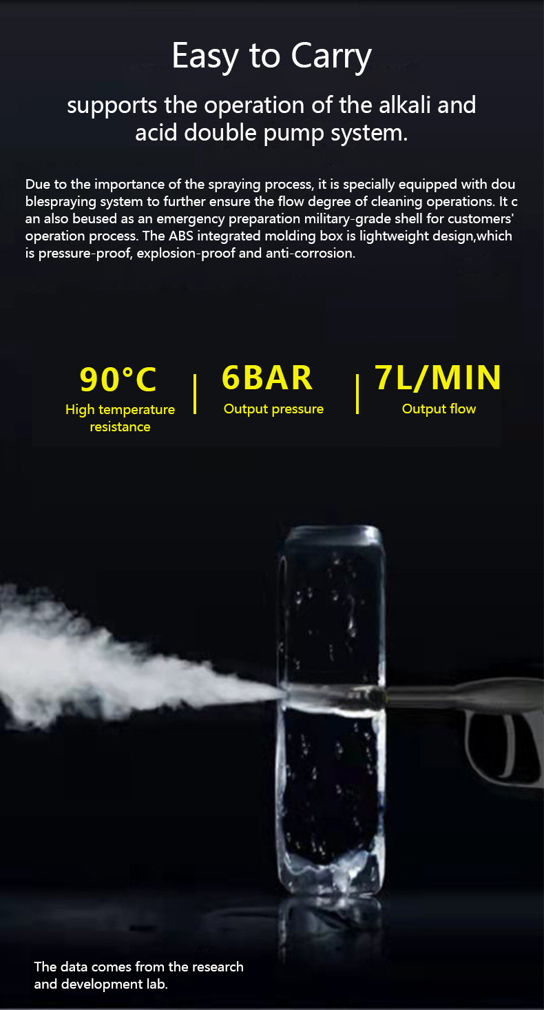 Output Pressure | 6 bar (≈600 kPa) | High-pressure water flow atomizes the chemical agent and sprays it up to 1.5 meters (or penetrates 1-meter-long pipes), reaching deep into gaps/elbows (e.g., range hood impeller gaps, pipe diameter transitions). |