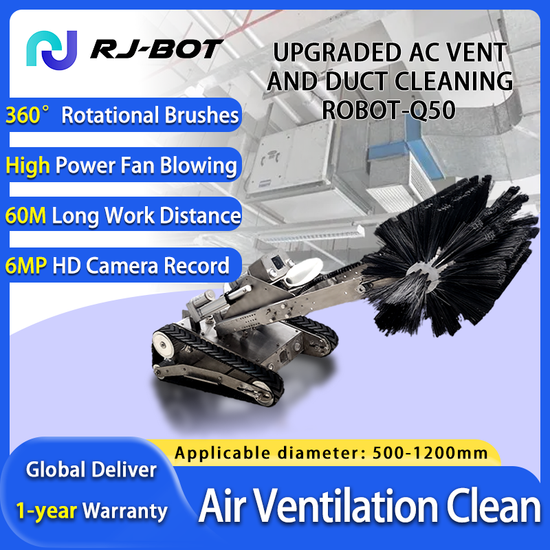 Q50 AC vent and duct cleaner is designed for central air conditioning cleaning. Contrased with traditional air vent shaft, this air duct clean machine adds 360° rotational nylon brushes and 6MP HD inspection camera. To a certain extent, this achieves an 80% improvement in cleaning efficiency, eliminates blind spots in cleaning, and extends the service life of pipelines. Q50 applications: air vent and duct of hotel, unites, offices, restaurant, factory and supermarket.
